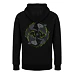 Potisk je tvořen pěti barvami v decentních tónech šedé s kontrastní zelenou, což dodává mikině jedinečný vzhled. Vyrobena je z extra měkkého a luxusního 320g česaného materiálu, který zajišťuje pohodlí a příjemný pocit při nošení. Praktické detaily, jako barevně sladěné koncovky šňůrek, podtrhují kvalitní zpracování.