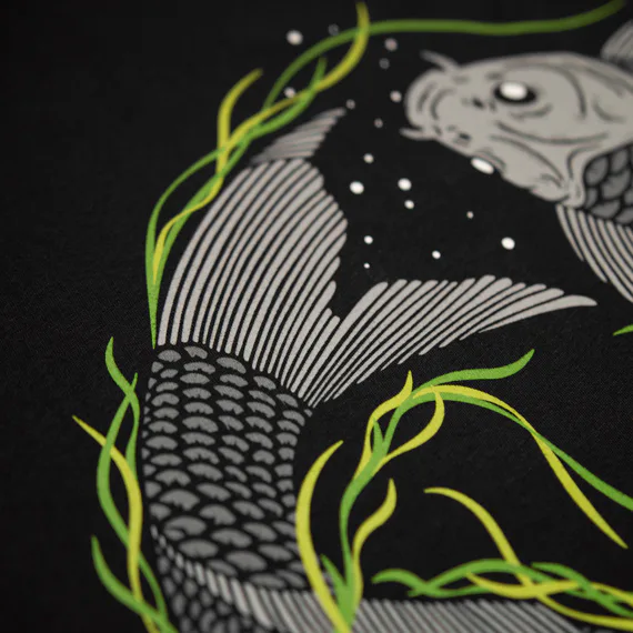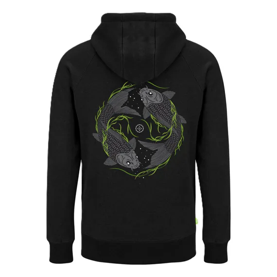 KUMU Mikina Vortex je stylová kaprařská mikina, která zaujme ručně kresleným motivem dvou kaprů kroužících mezi vodními rostlinami.