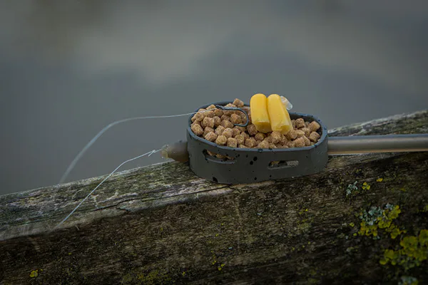 Feederový návazec MXC-3 s extrémně ostrými háčky bez protihrotu, ideální pro nastražení pelet nebo kukuřice.