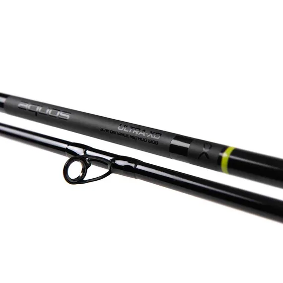 Aquos Ultra-XD je osazen odolnými očky většího průměru směřujícími dopředu, která zlepšují nához a podporují plynulý průchod vlasce, což je při těžkých krmítkách zásadní. Nechybí ani praktický držák háčku pro pohodlné a bezpečné upevnění a kvalitní rukojeť z kombinace korku a EVA, která zajišťuje pevný a komfortní úchop i při silových hodech a dlouhém chytání v náročnějších podmínkách.