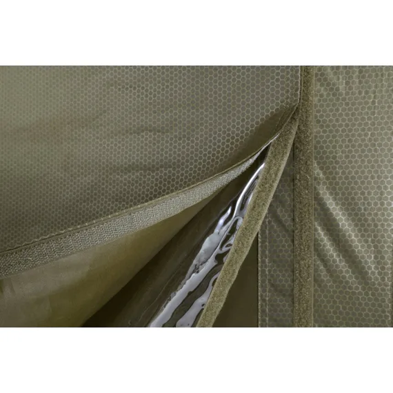 - přední okno je řešeno jako třívrstvé (síťka / transparentní PVC / nylonový plášť)