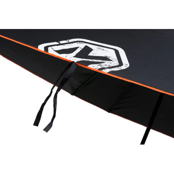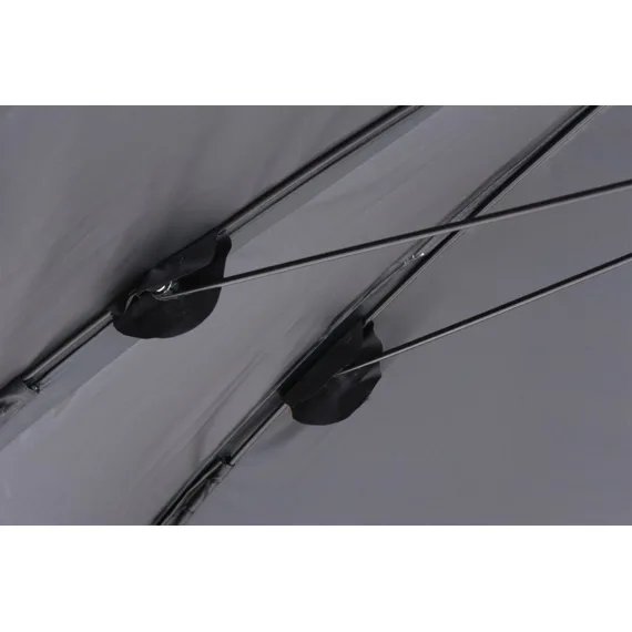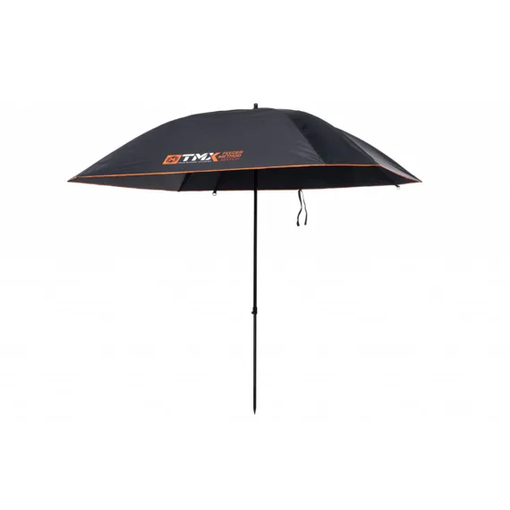 Plášť v atraktivním TMX designu je vyroben ze zcela nepromokavého nylonu s PVC vrstvou a kompletně podlepenými švy, což zajišťuje dokonalou vodotěsnost. Stabilní konstrukce je podpořena naklápěcím kloubem, pevnou tyčí a kotvícími lanky pro bezpečné ukotvení i za větrného počasí.