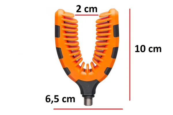 Mivardi Feeder podpěra prutu SensiTouch U Anti-Vibe je zadní podpěra prutu určená pro lov na method / feeder s kvalitním zpracováním a kompaktní velikostí, přičemž měkčený SoftTouch povrch chrání rukojeť prutu před poškozením. Měkčené AntiVibe výstupky omezují přenos otřesů vznikajících při pohybu na sedačce či křesílku směrem do prutu, čímž zabraňují klamným záběrům a chvění špičky, snadno se přizpůsobí nejrůznějším průměrům rukojetí a kvalitní mosazný závit je kompatibilní se všemi standardními vidličkami, držáky a rameny. Technické parametry: rozměry (V × Š) 10 × 6,5 cm, hmotnost 24 g.