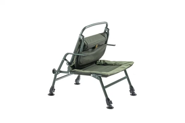 Snadno přenosné kaprařské křesílko s dvoudílným skládacím opěradlem a mimořádně stabilní konstrukcí.