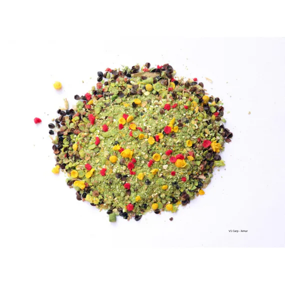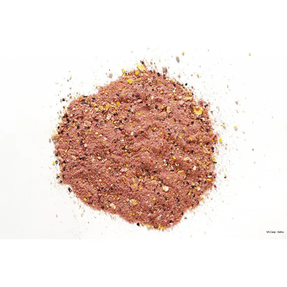V1 Carp – Extra: extra hrubé krmení červené barvy s aktivními kousky. Spolehlivě láká kapry a udrží je v krmném místě velmi dlouhou dobu. Jeho nezaměnitelné nasládlé a kořeněné aroma je založeno na přírodních ingrediencích. Dobře funguje v průběhu celého roku i v případě, kdy ryby nereagují na silně aromatizovaná krmiva.