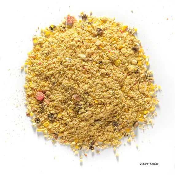 V1 Carp – Ananas: velmi hrubé krmení s aktivními kousky a velmi účinným ovocným aroma, které ryby doslova milují. Je vhodné k celoročnímu použití.