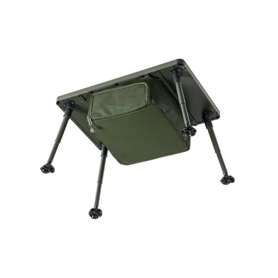 Stolek do bivaku větší velikosti se zabudovaným úložným prostorem pod deskou.