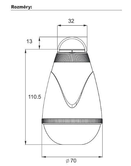 Praktické závěsné světlo ve tvaru klasické žárovky s maximálním výkonem 1,5 W / 150 lm, napájené integrovanými lithiovými bateriemi.
