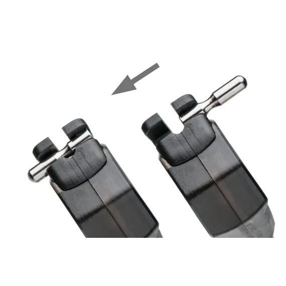 Spolehlivý klip bezpečně drží všechny průměry vlasců i šňůr a současně umožňuje snadné a bezpečné odpadnutí signalizátoru při záseku. Konstrukce ramene zajišťuje, že při odpadnutí nedochází k nežádoucímu pohybu nebo nárazu do vidličky.