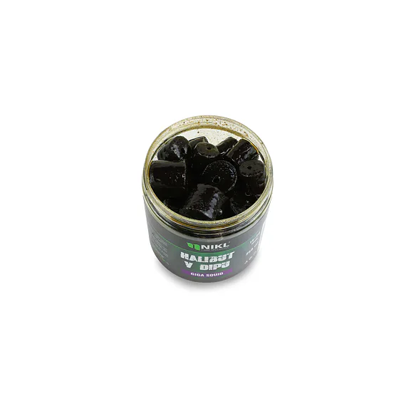 Nikl Black halibut pelety v dipu Giga Squid 15+20mm, 250ml