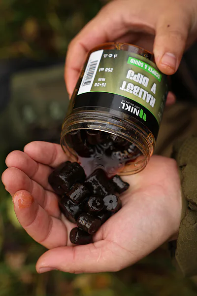 Silně nadipované, vysoce atraktivní halibut pelety v průměru 15 a 20mm s prodlouženou dobou rozpadu, které jsou určené k okamžitému použití.