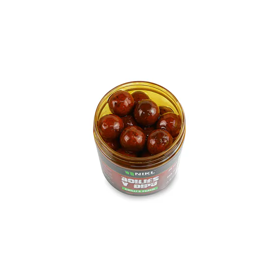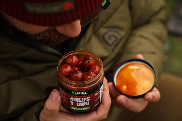 Nikl Boilies v dipu Chilli & Peach jsou mimořádně atraktivní nástrahou, která je již při výrobě důkladně napuštěna koncentrovaným dipem. Díky tomu tato nástraha okamžitě po dopadu do vody začíná intenzivně pracovat a uvolňovat silný chuťový i pachový signál, jenž láká kapry i z větší vzdálenosti. Kombinace výrazné pikantnosti chilli a sladké ovocné broskve vytváří nezaměnitelný profil, který stimuluje zvědavost i žravost ryb po celý rok.
