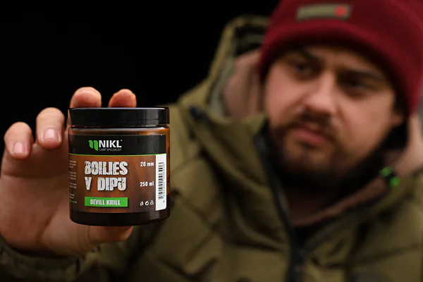 Silná vrstva dipu vytváří kolem boilies intenzivní krmný signál, který se ve vodě uvolňuje nepřetržitě a po dlouhou dobu. Tato koncentrace atraktorů zajišťuje, že nástraha pracuje i v hlubších vodách, v chladnějších podmínkách nebo na místech, kde je nutné ryby přivést z větší vzdálenosti. Devill Krill je jednou z nejoblíbenějších příchutí v sortimentu firmy Nikl, a právě dipovaná verze posouvá jeho účinnost ještě o úroveň výše.
