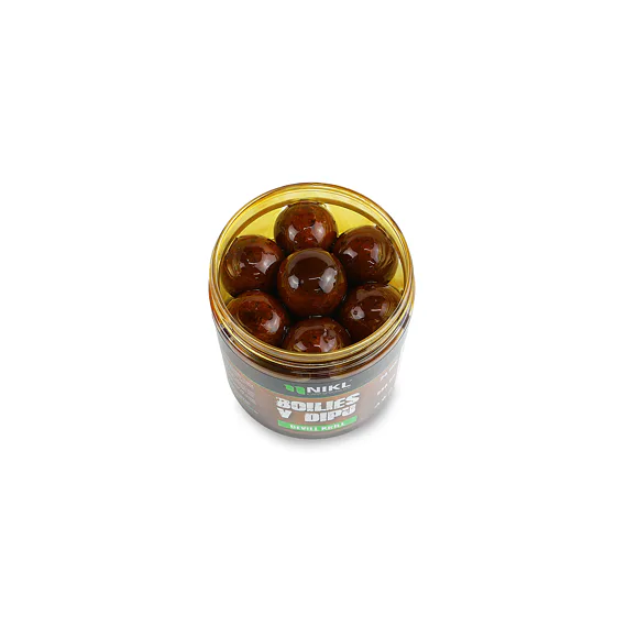 Nikl Boilies v dipu Devill Krill představuje výjimečně atraktivní nástrahu, která je díky silnému dipu připravena k okamžitému použití. Vysoká koncentrace krillových složek doplněná o charakteristickou „pekelně“ výraznou chuť a vůni vytváří nesmírně lákavý signál pro kapry všech velikostí. Devill Krill je kombinací přírodních mořských extraktů a speciálně upraveného krillu, což v dipované formě vede k maximálnímu uvolňování atraktorů ihned po dopadu na dno.