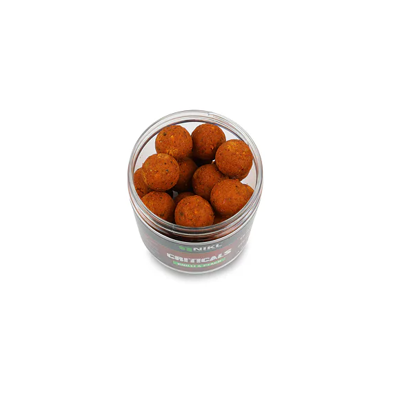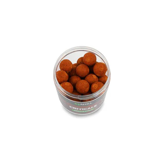 Boilies Criticals jsou kriticky vyvážené nástrahy, které umožňují mimořádně efektivní prezentaci a maximální funkčnost návazce na jakémkoliv typu dna. Díky své neutrální váze se jemně vznášejí nade dnem a negují hmotnost háčku, což výrazně zvyšuje úspěšnost nasátí i u velmi opatrných či zkušených kaprů. Po nahození mohou krátce plavat, ale postupně do sebe nasají vodu a lehce klesnou na dno, čímž se stanou dokonale kriticky vyváženou nástrahou, která působí přirozeně a nenápadně. Právě tato vlastnost z Criticals dělá produkt, který výrazně přispěl k mnoha našim závodním i běžným úspěchům a stal se nedílnou součástí moderní kaprařiny.