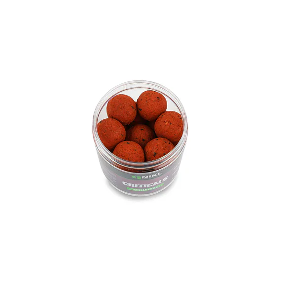 Boilies Criticals jsou kriticky vyvážené nástrahy, které umožňují mimořádně efektivní prezentaci a maximální funkčnost návazce na jakémkoliv typu dna. Díky své neutrální váze se jemně vznášejí nade dnem a negují hmotnost háčku, což výrazně zvyšuje úspěšnost nasátí i u velmi opatrných či zkušených kaprů. Po nahození mohou krátce plavat, ale postupně do sebe nasají vodu a lehce klesnou na dno, čímž se stanou dokonale kriticky vyváženou nástrahou, která působí přirozeně a nenápadně. Právě tato vlastnost z Criticals dělá produkt, který výrazně přispěl k mnoha našim závodním i běžným úspěchům a stal se nedílnou součástí moderní kaprařiny.