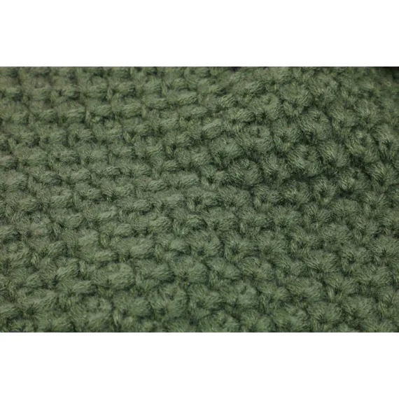 Pletený kulich v zelené barvě, opatřen bambulí a gumovým logem Nikl.