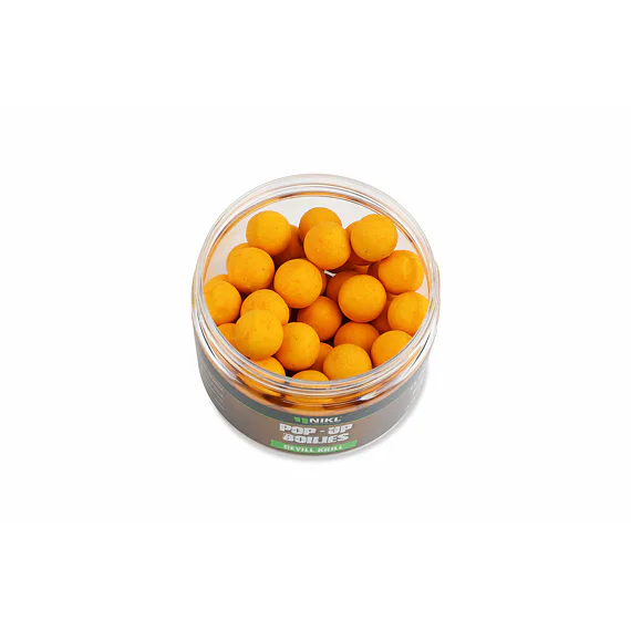 Plovoucí boilies Nikl Pop-Up Devill Krill přichází v atraktivní žluto-oranžové barvě, která zajišťuje maximální viditelnost i v zakalené nebo hlubší vodě. Tato barevná kombinace vytváří silný vizuální impuls, díky němuž kapr nástrahu snadno najde a rychle na ni reaguje. Devill Krill je navržený pro rybáře, kteří chtějí univerzální a zároveň vysoce lákavou pop-up nástrahu fungující napříč sezónami.
