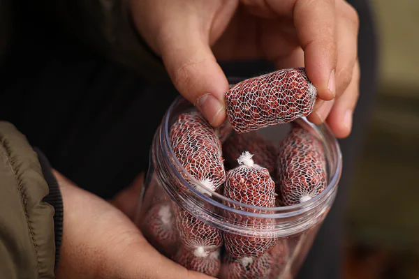 Peletová náplň obsahuje určité množství olejů, což přirozeně prodlužuje dobu rozpadu PVA, zejména ve studené vodě. Punčocha se spolehlivě rozpustí i při teplotě kolem 2 °C, avšak proces může trvat několik minut – tato vlastnost však pomáhá prodloužit aktivitu návnady v okolí montáže. Pokud punčochu zalijete dipem nebo boosterem s vyšším obsahem olejů, doba rozpadu se dále prodlouží a zvýrazní se aroma.