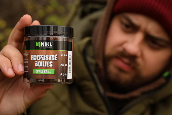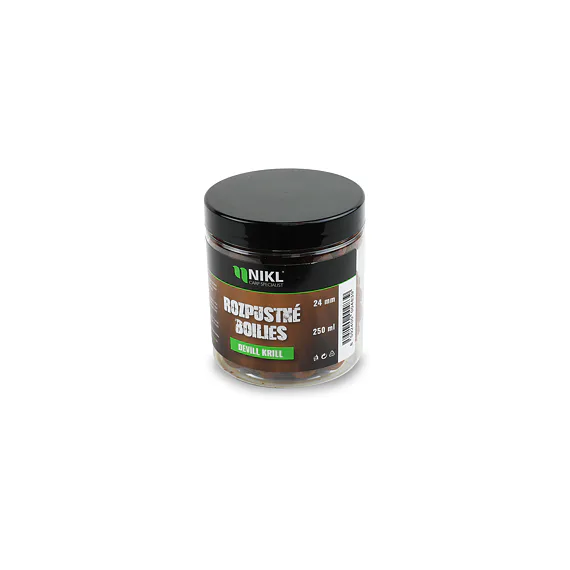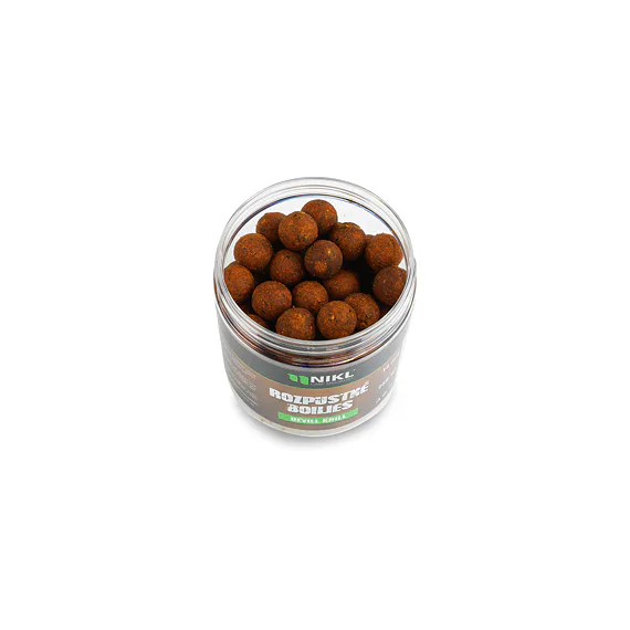 Nikl Rozpustné boilies Devill Krill je kulaté, rychle pracující boilies, které vychází z konceptu známých Attract Hookers. Vyznačuje se intenzivní masově-kořeněnou vůní krillu, doplněnou o jemný pikantní podtón, který přináší mimořádně silný potravní signál. Tato příchuť je velmi účinná na aktivní ryby i na opatrné jedince, kteří reagují na přirozené masové profily.