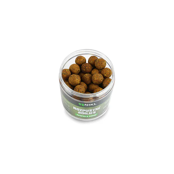 Nikl Rozpustné boilies Scopex & Squid spojuje krémově sladký scopex s výraznou olihňovou esencí squid, což vytváří mimořádně účinný aromatický profil. Tato osvědčená kombinace sladkého a masového charakteru dokáže přilákat ryby i v situacích, kdy nereagují na standardní příchutě. Kulaté provedení, vycházející z původních Attract Hookers, přináší rovnoměrné a stabilní rozpouštění kuličky od prvního okamžiku ve vodě.