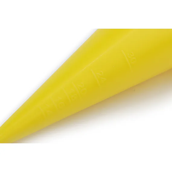 Žlutá špička se stupnicí průměrů, podle které je možné špičku seříznout pod potřeby a to až na průměr 34 mm.