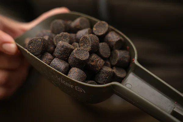 Plnohodnotné halibut pelety bez dírky, které jsou vhodné zejména pro zakrmování.