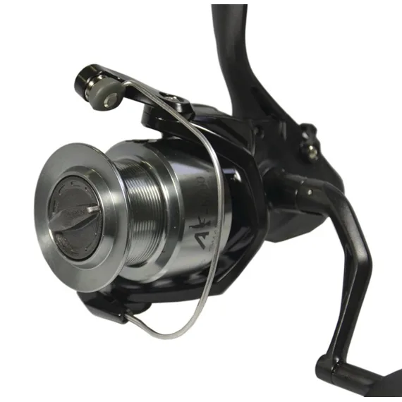 Model AK Baitfeeder lze přepnout na volnoběžný systém, což umožňuje volný pohyb návnady. Cyklonický chod rotoru zvyšuje proudění vzduchu skrz a minimalizuje vniknutí vody a vzniknutí koroze. Naviják je vybaven hliníkovou cívkou, v balení naleznete i náhradní cívku.