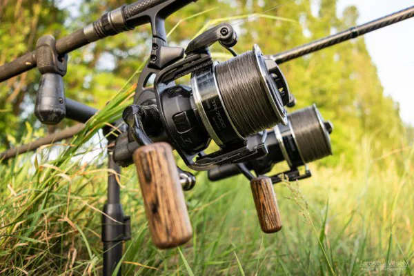 Kaprový naviják s přední brzdou a grafitovým tělem od značky Okuma.