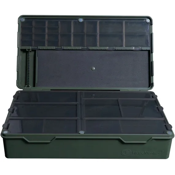 Robustní Tackle Box od RidgeMonkey je ideální pro bezpečné uložení velkého množství drobného rybářského vybavení.