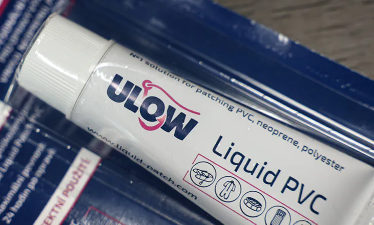 Tekutá záplata slouží k opravám nafukovacích člunů.