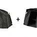 Set rychle sestavitelného přístřešku Trakker Tempest RS 100 v Camo provedení s Kšiltem Tempest RS 100 Skull Cap , který kryje prostor dveří a zamezuje průniku deště a vytváří stín.