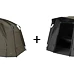Set rychle sestavitelného přístřešku Trakker Tempest RS 100 s Kšiltem Tempest RS 100 Skull Cap , který kryje prostor dveří a zamezuje průniku deště a vytváří stín.