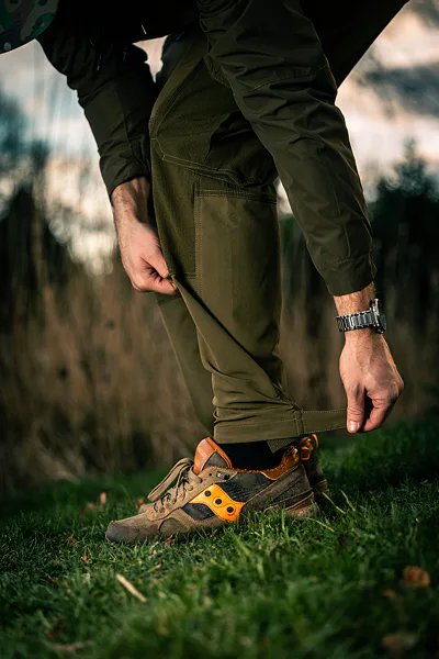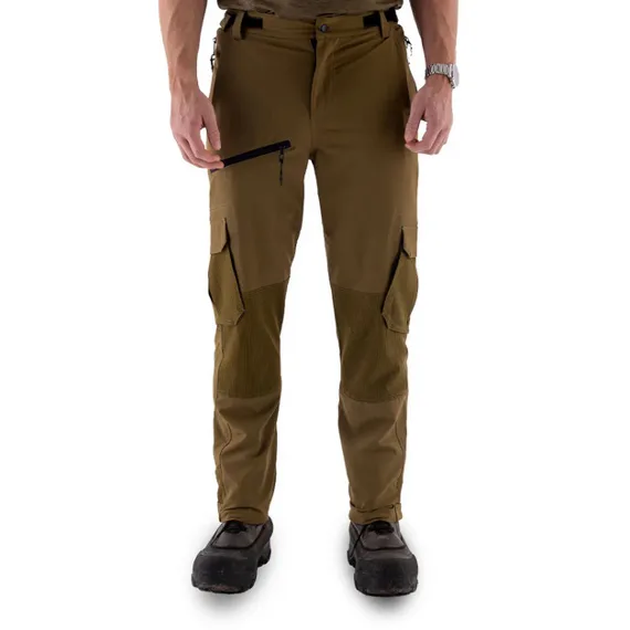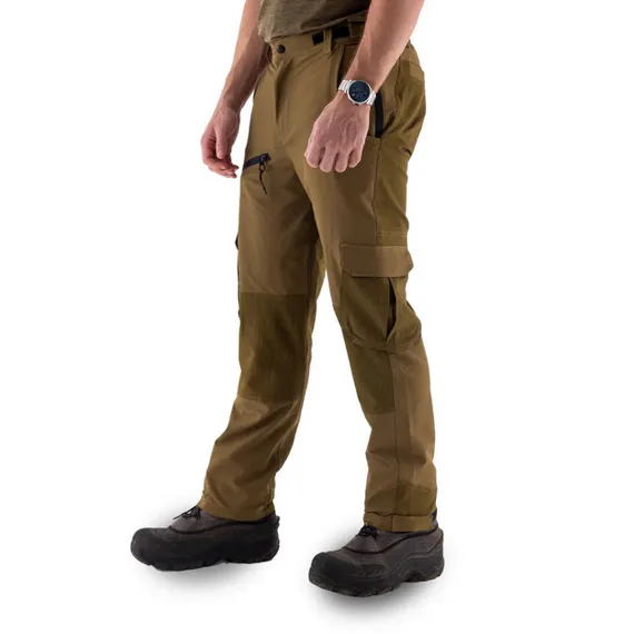 Strečová látka zajišťuje volný a přirozený pohyb, takže se můžete pohodlně ohýbat, chodit i manipulovat s výbavou bez omezení. V oblastech s vyšším opotřebením jsou použity pevné ripstop panely, které výrazně prodlužují životnost kalhot. Kvalitní zpracování a odolné švy vytvářejí konstrukci vhodnou do náročných podmínek, kde oceníte jistotu i trvanlivost.
