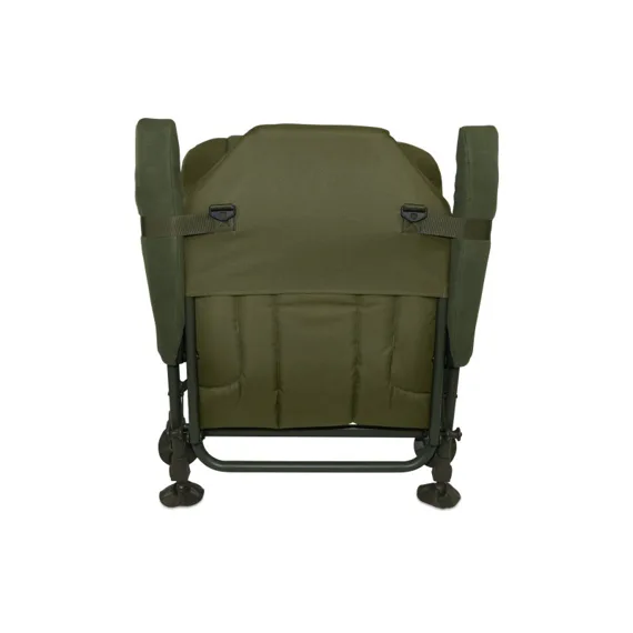 Křeslo nabízí pevné polstrování, zakřivenou přední hranu pro lepší podporu nohou a patentovaný systém nastavení nohou, který zaručuje stabilitu na jakémkoli povrchu. Díky hmotnosti pouhých 5,3 kg jde o mimořádně lehký model, který přesto poskytuje luxusní oporu i náročným kaprařům. Fleecové potahy opěrek rukou přispívají k příjemnému, měkkému kontaktu v chladných i teplejších dnech.