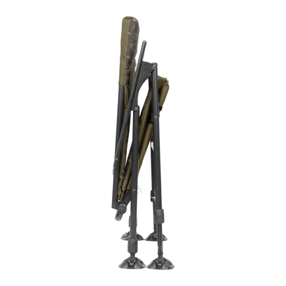 Konstrukce je navržena tak, aby byla maximálně lehká a rychle připravená k použití – stačí rozložit a můžete sedět. Čtyři nastavitelné nohy s velkými bahenními patkami zajišťují pevné usazení i v náročném terénu. Praktické prvky, jako je rychlé skládání nebo celkově kompaktní rozměry při transportu, z něj dělají spolehlivé křeslo pro každého rybáře.