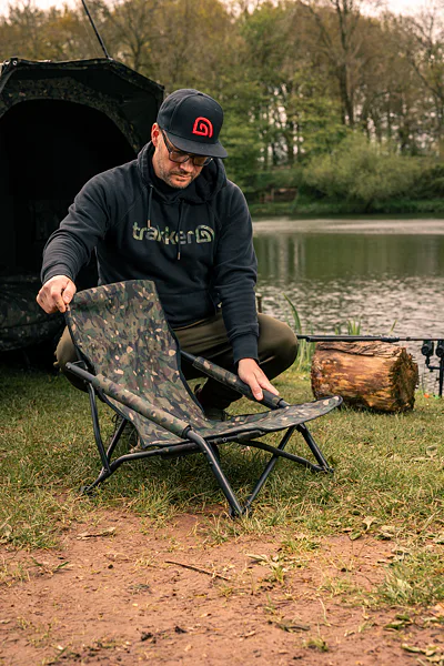 Výška opěrky zad je 50 cm, výška sedáku činí 22 cm a šířka sedadla dosahuje 50 cm, což zajišťuje pohodlné sezení i při dlouhém pobytu u vody. Celková hmotnost křesla je pouhých 2,9 kg a jeho maximální nosnost činí 130 kg při běžném používání. Křeslo je laděno do populárního camo designu Trakker a vnější materiál tvoří odolný 100% polyester, který poskytuje dlouhou životnost, nízkou hmotnost a snadnou údržbu.