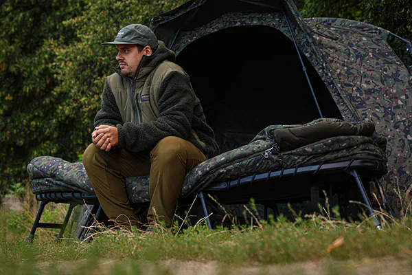 Matrace z paměťové pěny s vysokou hustotou se dokonale přizpůsobí vašemu tělu a poskytuje podporu v bederní části, kde je nejvíce potřeba. Lehátko je vybaveno osmi nastavitelnými nohami s patkami pro stabilitu v každém terénu. Velkým benefitem je také úložná kapsa otočná o 360°, ideální pro powerbanky či příposlech. Díky dvojitým pantům může spacák zůstat neustále připevněn.