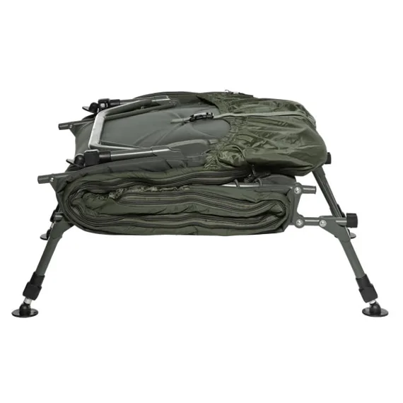 Model RLX Flat-6 Bed využívá šest samostatně nastavitelných nohou, které umožňují dokonalé vyrovnání i na nerovném nebo bahnitém povrchu. Široké bahenní patky zajišťují rovnoměrné rozložení hmotnosti, zatímco pevná konstrukce bez šroubovacích kloubů snižuje hmotnost a zvyšuje odolnost. Díky rychlému rozložení oceníte lehátko i při krátkých, dynamických výpravách.