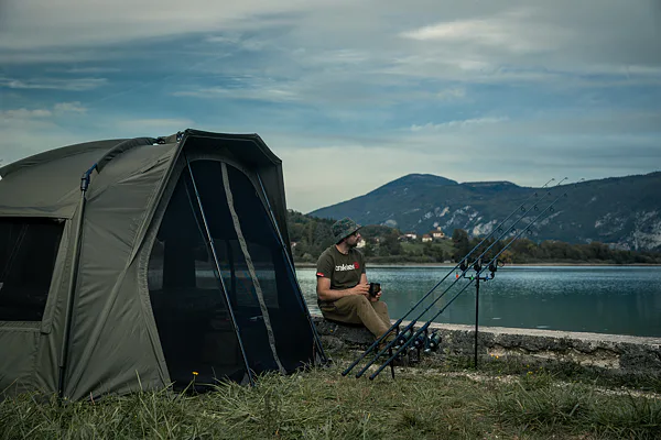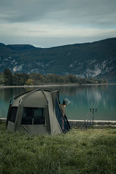 Panel využívá magnetický samo-uzavírací systém, díky kterému můžete při záběru okamžitě vyběhnout z bivaku bez nutnosti pracného rozepínání zipu. Po průchodu se panel sám zavře a udrží tak ochranu před hmyzem aktivní. Tato funkce je neocenitelná zejména při nočním rybolovu, kdy záleží na tichosti i rychlosti pohybu.
