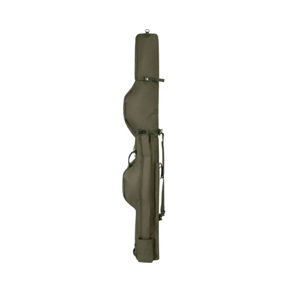 Pouzdro je vybaveno odnímatelným, nastavitelným ramenním popruhem, perfektně vyváženým neoprenovým držadlem a dvěma silnými rukojeťmi pro snadné nakládání. Rukojeti jsou umístěny tak, aby pruty i s navijáky zůstaly ve stabilní poloze a nehrozilo jejich poškození. Celá konstrukce je vyrobena z odolné n-dura látky, která je známá svou životností a spolehlivostí i v extrémních podmínkách. D-spona u špiček prutů umožňuje pouzdro kdykoliv zavěsit, a tím ještě více zpříjemnit manipulaci během přesunů.
