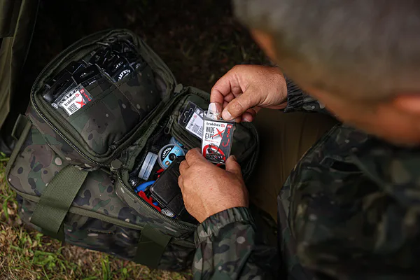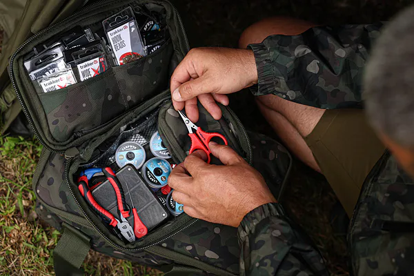 Vnitřní prostor je navržen tak, aby poskytoval maximální variabilitu. Odnímatelnou taštičku na zip nyní můžeš umístit buď do horní, nebo spodní přihrádky, případně ji úplně vyjmout – přesně podle toho, jaký typ výbavy chceš uložit. Je ideální pro olova, připravené PVA špalíky, drobnou bižuterii nebo jakékoliv jiné komponenty, které je třeba mít rychle dostupné. Horní i spodní oddíl pojmou i menší rybářské krabičky nebo desky na návazce, což vytváří mimořádně univerzální úložný systém.