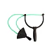 Pevný a lehký prak s pěnovou rukojetí, systémem proti zamotání gumy a svařovaným košíčkem.