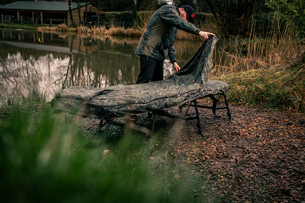 Přehoz na lehátko, potažený jedinečným maskovacím vzorem Trakker, který vám zajistí maximální pohodlí a tepelný komfort.