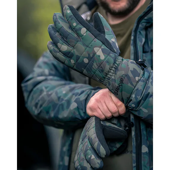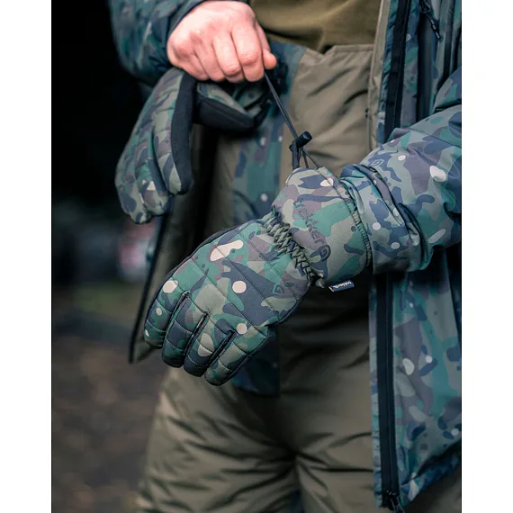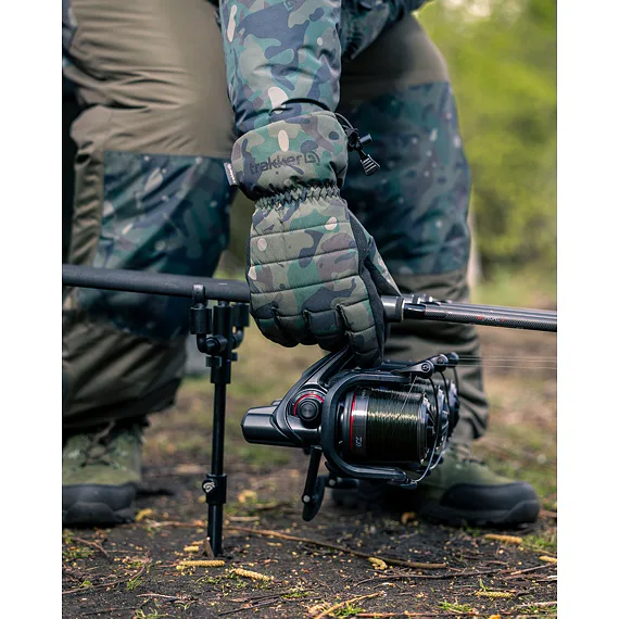 Rukavice jsou vybaveny elastickými manžetami, které pevně obepínají zápěstí a zabraňují pronikání větru nebo studené vody dovnitř. Odolný materiál na dlani z polyamidu a polyuretanu zajišťuje pevný úchop, což oceníte při manipulaci s výbavou. Maskovací camo vzor TechPro dodává rukavicím moderní vzhled a perfektně ladí s dalšími doplňky této řady.
