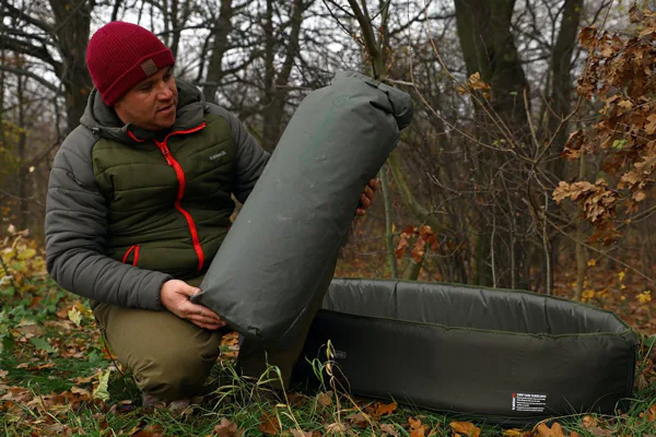 Samonafukovací kaprová podložka s vysokými okraji pro maximální ochranu úlovku a malými transportními rozměry.