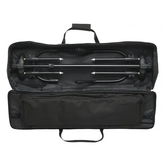 Stojan je vybaven systémem „Dog-Leg“ upevnění hrazd, který eliminuje kontakt se swingery a chrání je před možným poškozením. Jakmile jsou pruty ve stojanu, lze úhel hrazd nastavit tak, aby hlásiče svíraly ideálních 90°. Součástí balení jsou hrazdy na tři pruty i tři rohatinky Quicklock Butt Rest, takže máte k dispozici kompletně připravenou sestavu.