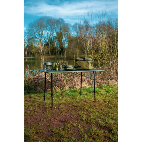Po sklopení nohou lze stůl složit do zcela plochého tvaru, který výrazně šetří místo při přepravě v autě nebo při skladování doma. Transportní rozměry 120 × 80 × 4 cm umožňují pohodlné uložení bez složitých manévrů, zatímco hmotnost 11,5 kg zajišťuje ideální rovnováhu mezi stabilitou a přenositelností. Trakker Folding Session Table Large je tak praktickým a robustním řešením pro rybáře, kteří vyžadují spolehlivý pracovní prostor během každé výpravy.