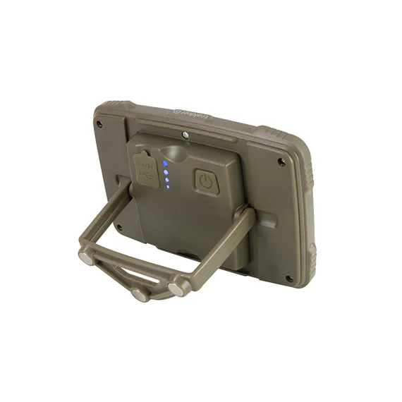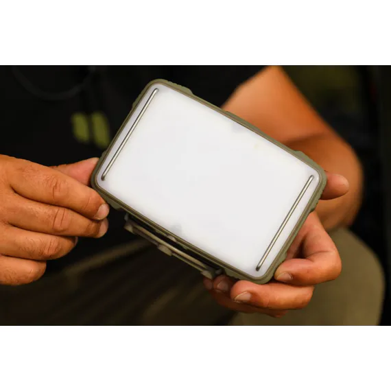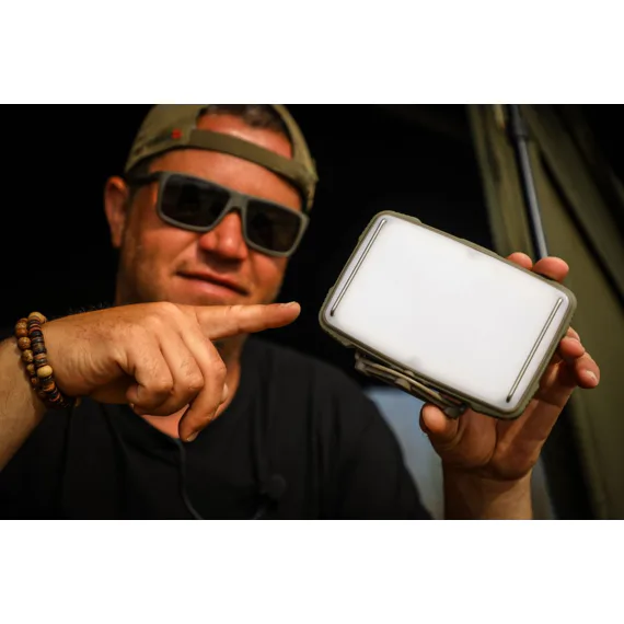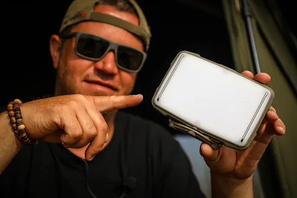 Světlo je vybaveno 43 LED diodami Luxeon (0,3 W) a speciálním krycím panelem proti oslnění, který zajišťuje hladké, širokoúhlé a rovnoměrně rozptýlené světlo. To je ideální pro detailní snímky úlovků i bezpečný pohyb kolem bivaku. Dvojice Li-ion baterií 2000 mAh poskytuje stabilní výkon, spolehlivou výdrž a dlouhou životnost (až 500 nabíjecích cyklů), takže se na světlo můžete plně spolehnout během dlouhých výprav.