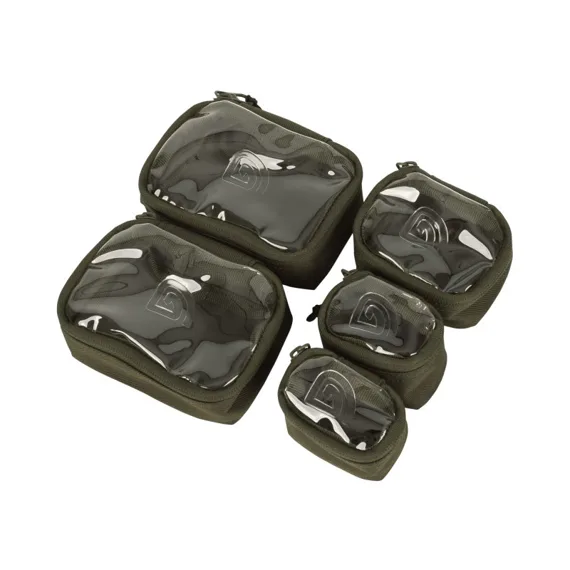 Organizované pouzdro pro uložení různých velikostí olov a dalšího příslušenství, dodáváno s pěti samostatnými pouzdry různých velikostí.